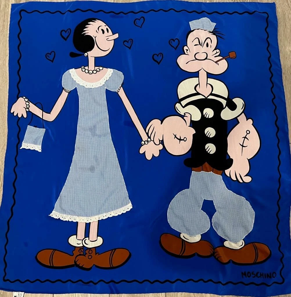 Moschino Royal Blue Multi C2000 Collectible 034 Popeye 034 Silk Rare Scarf 34 034 X 33 034 Ebay