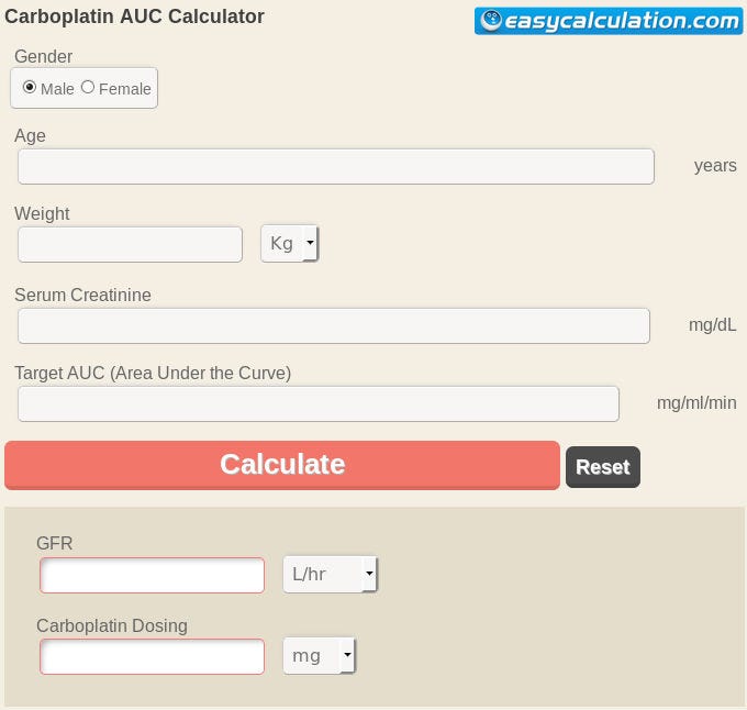 Carboplatin Calculator Calculate Carboplatin Dosage Auc